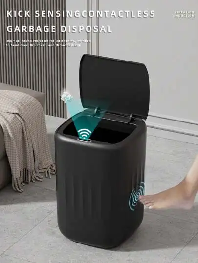 [Smart Trash Can] 4.76 Gallon Automatic Touchless Trash Can | Black Bathroom Smart Garbage Can with Lid, Plastic Electric Narrow Small Rubbish Bin for Kitchen, Office, Living Room, Toilet, Bedroom, RV